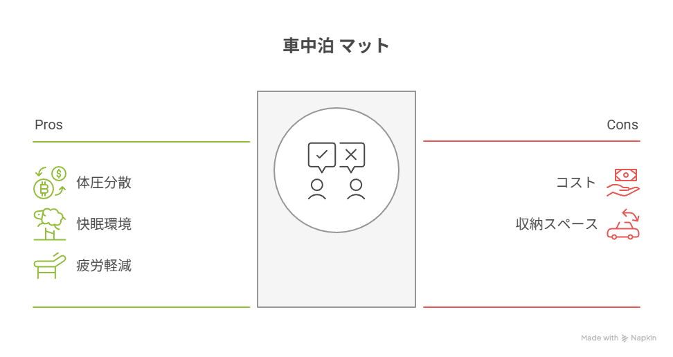 車中泊 マットは種類も多く、選び方を間違えると寝心地が悪くなってしまいます。以下のポイントを押さえることで、快適なマット選びが可能になります。